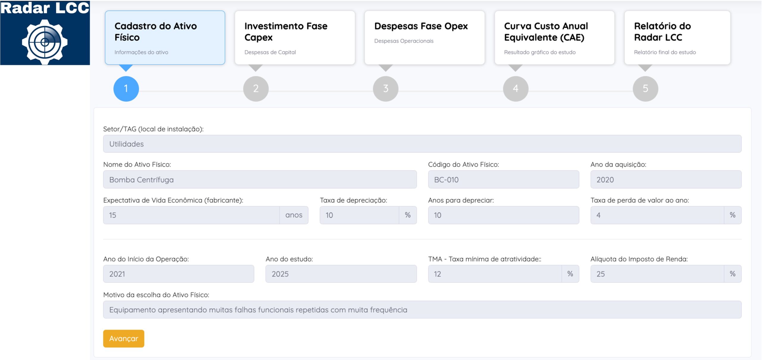 O Radar LCC se baseia nos conceitos do Custo do Ciclo de Vida (LCC – Life Cycle Cost) com o objetivo de determinar o momento correto para reformar e/ou substituir os Ativos Físicos.